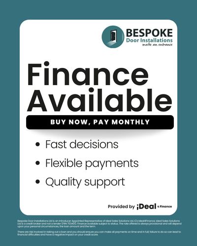 Bespoke Door Installations Ltd is an Introducer Appointed Representative of Ideal Sales Solutions Ltd, t/a Ideal4Finance. Ideal Sales Solutions Ltd is a credit broker and not a lender (FRN 703401). Finance available subject to status. The rate offered is always provisional and will depend upon your personal circumstances, the loan amount and the term.